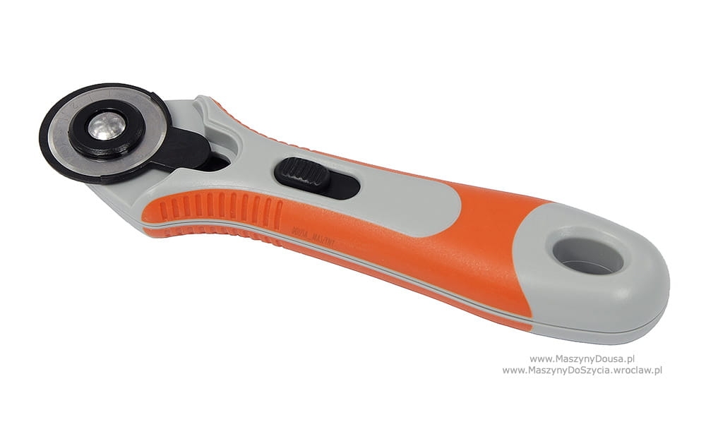 Nóż krążkowy o średnicy ostrza 28 mm. Rączka noża ma symetryczny kształt, co ułatwia trzymanie noża w obu dłoniach, zatem mogą go używać osoby praworęczne jak i leworęczne.