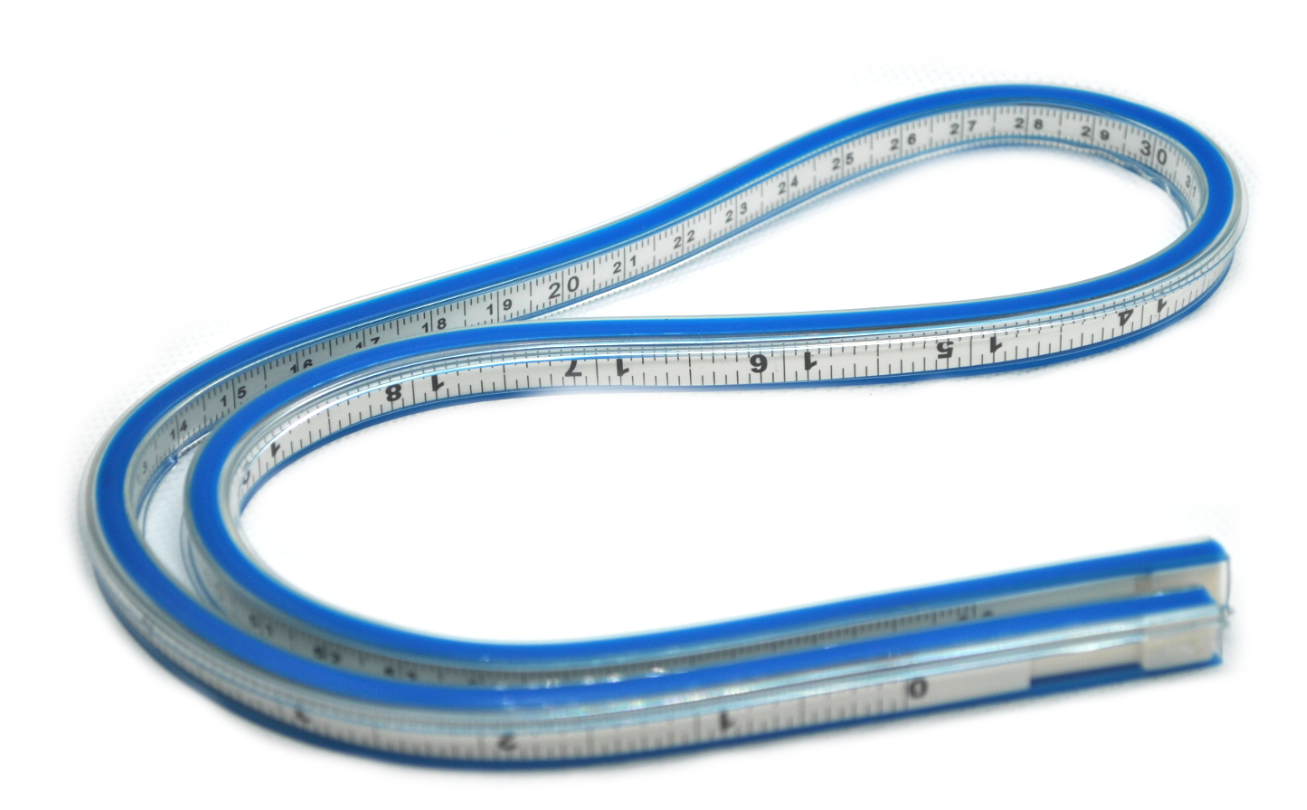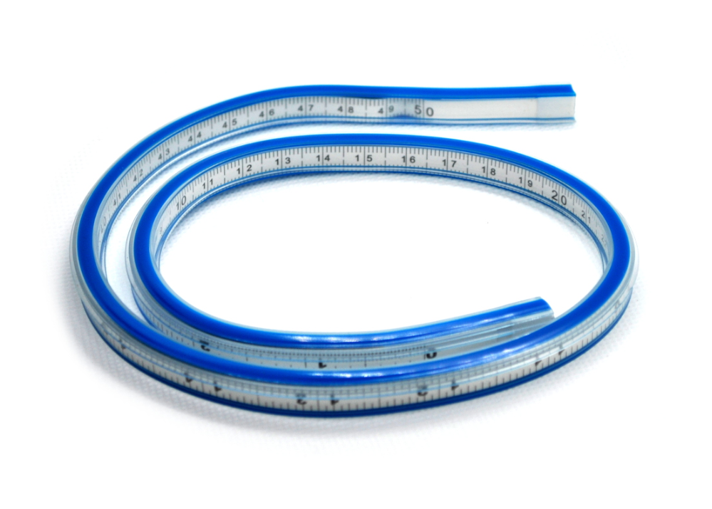 Miara elastyczna do mierzenia krzywych. Jej elastyczność sprawia, że w łatwy sposób można wygiąć ją w dowolny kształt.