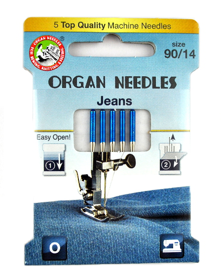 Igły półpłaskie (130/705H) w rozmiarze 90 do jeansu japońskiej firmy Organ.