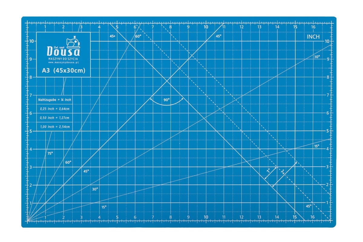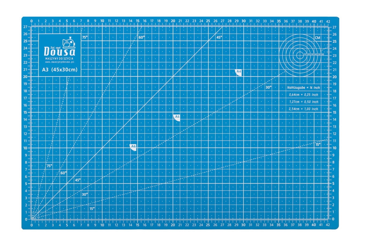 Mata samogojąca z zaznaczonymi kątami i liniami równoległymi. Wykonana jest ze specjalnego tworzywa, które po cięciu samo się zasklepia, pozostawiając matę wciąż gładką.