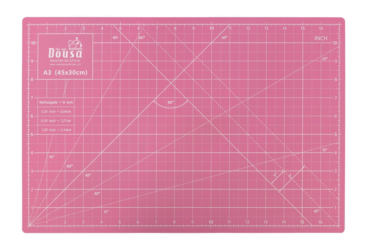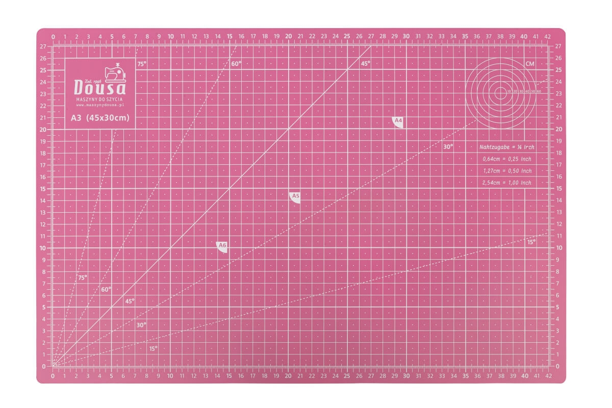 Mata samogojąca z zaznaczonymi kątami i liniami równoległymi. Wykonana jest ze specjalnego tworzywa, które po cięciu samo się zasklepia, pozostawiając matę wciąż gładką.