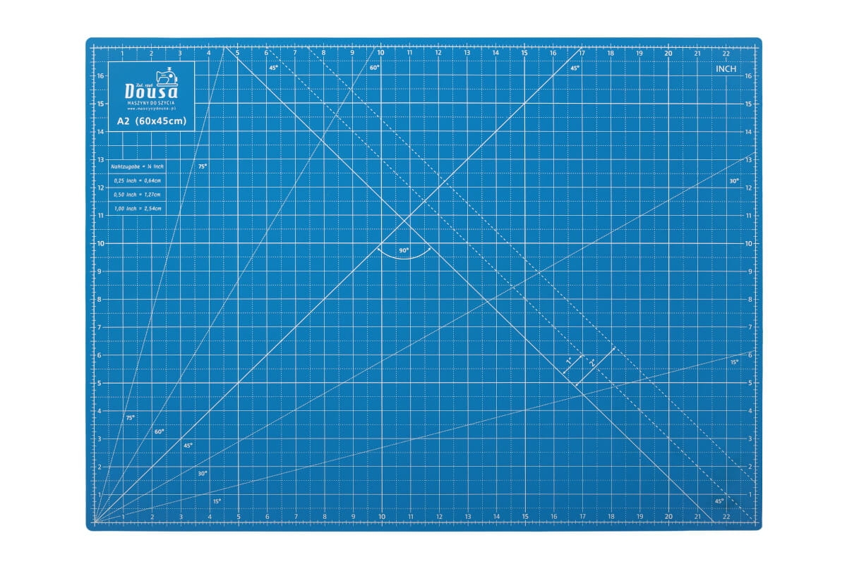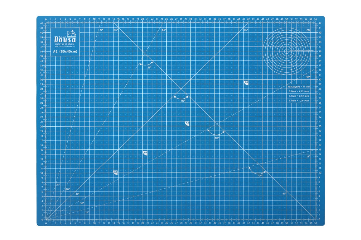 Mata samogojąca z zaznaczonymi kątami i liniami równoległymi. Wykonana jest ze specjalnego tworzywa, które po cięciu samo się zasklepia, pozostawiając matę wciąż gładką.
