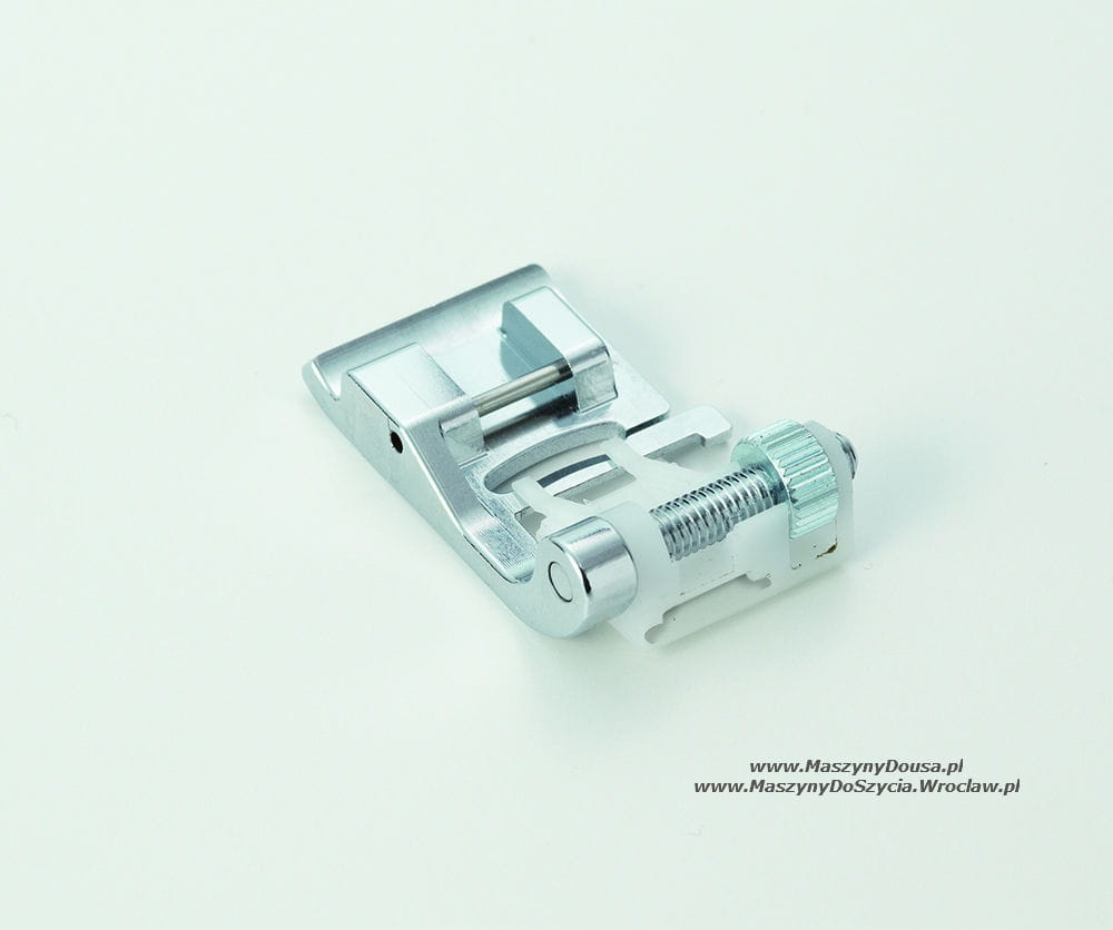 Stopka doskonałado naszywania cekinów, ozdobnych tasiemek oraz wszywaniu gumek czy silikonu w taśmie. Dzięki prowadnikowi całość będziemy mogli wykonać sprawnie i estetycznie. Prowadnik stopki przystosowany jest do tasiemki o stałej maksymalnej szerokości 7 mm, ale sprawdza się również przy węższych.
