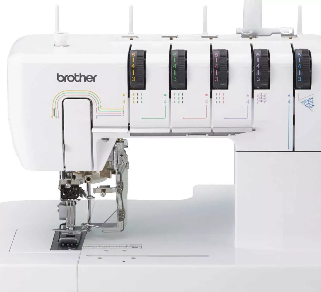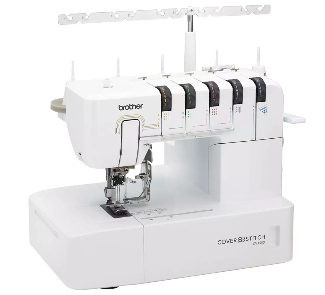 - Barwny system nawlekania nici - nawlekanie nici jest poprowadzone przez metalową antenę, trwałe rozwiązanie niespotykane w innych coverlockach domowych. Poprzez system chwytaczy i przelotek igła finalnie trafia do igły, która w odróżnieniu od poprzedniej generacji coverlocków Brother opuszcza się w kierunku płytki ściegowej pod kątem prostym. Zwiększa to siłę przebicia igły i zmniejsza uszkodzenia materiału spowodowane pracą igły. Dzięki zastosowanym mechanizmom nawlekanie covera CV3550 jest intuicyjne, co nie jest wcale takie oczywiste przy tak znacznym zaawansowaniu technicznym maszyny.