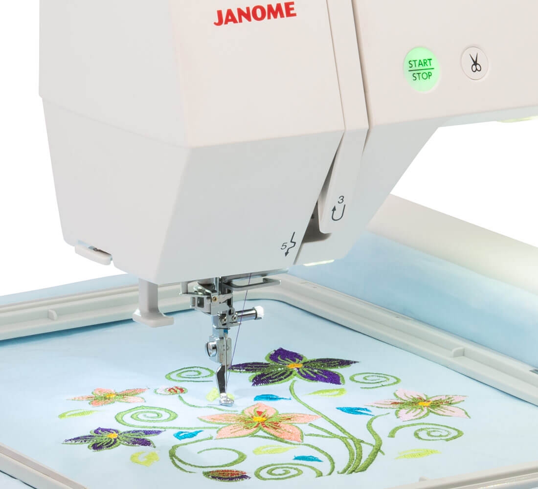 Hafciarka Janome MC500E jest jednoigłowa, ale z powodzeniem wyhaftujesz na niej wzory wielokolorowe. Sama zatrzyma się za każdym razem, gdy w projekcie haftu będzie wymagana zmiana koloru nici i poprosi o jej zmianę. Prostota i intuicyjność obsługi maszyny sprawia, że nawet osoba bez żadnego doświadczenia w hafciarstwie z powodzeniem poradzi sobie z jej obsługą.