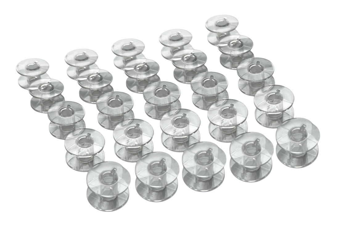 Komplet 25 szpulek plastikowych, płaskich do wieloczynnościowych maszyn do szycia
