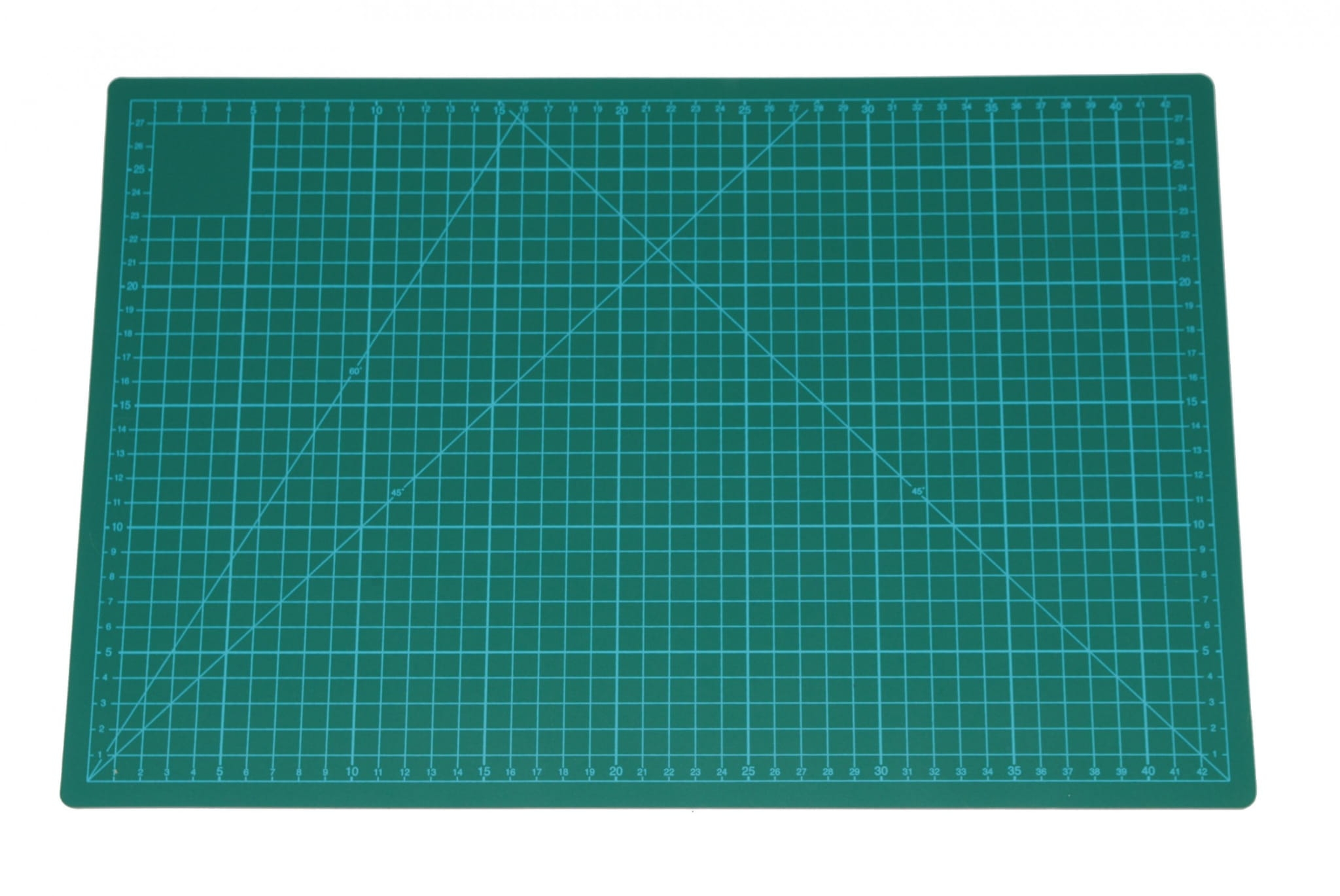 Mata podkładkowa samogojąca A2 z zaznaczonymi kątami i liniami równoległymi. Wykonana jest ze specjalnego tworzywa, które po cięciu samo się zasklepia, pozostawiając matę wciąż gładką.