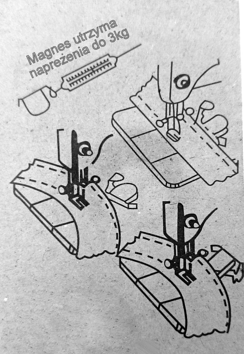 Uniwersalny prowadnik magnetyczny - magnes, duży. Ułatwia szycie w równej odległości od krawędzi materiału.