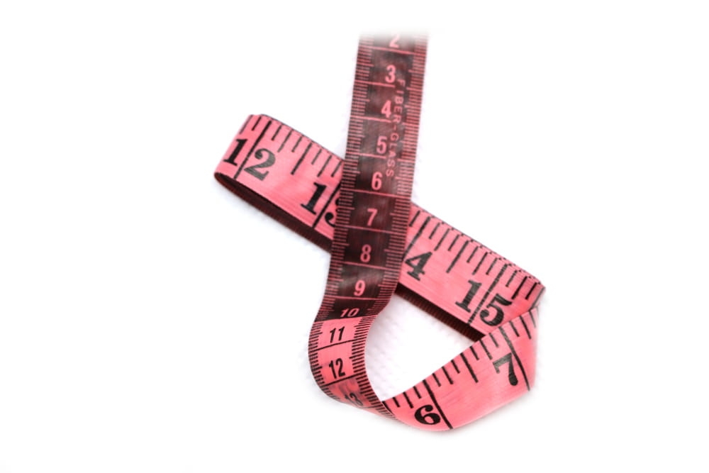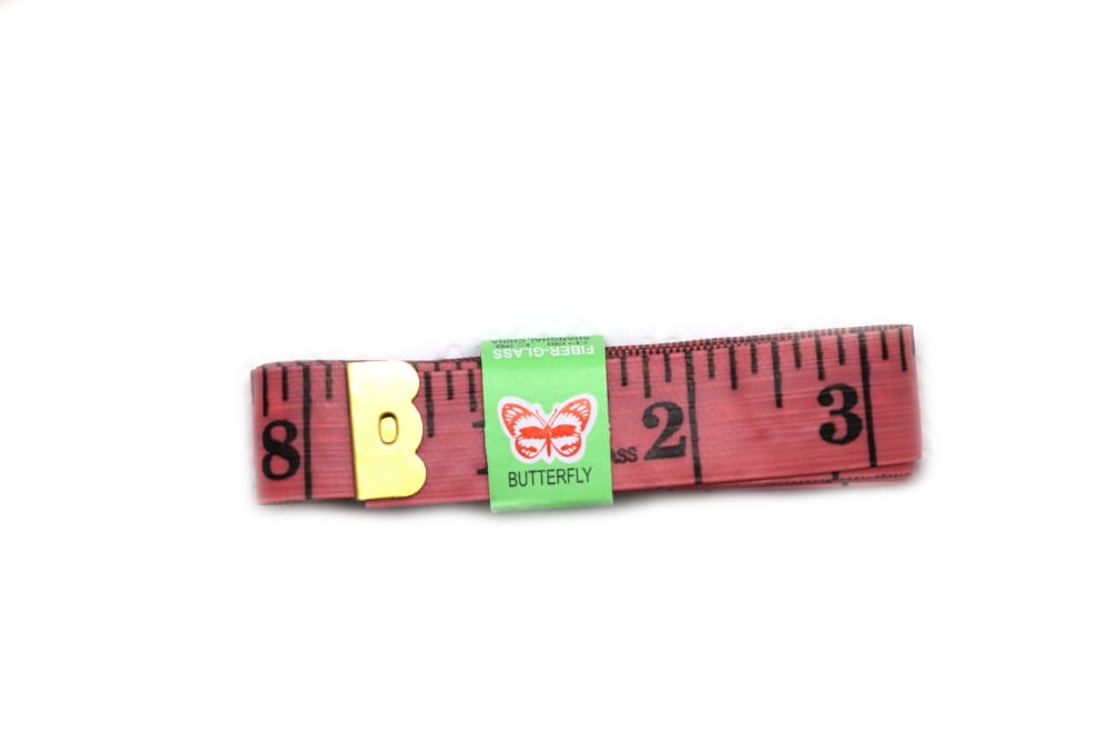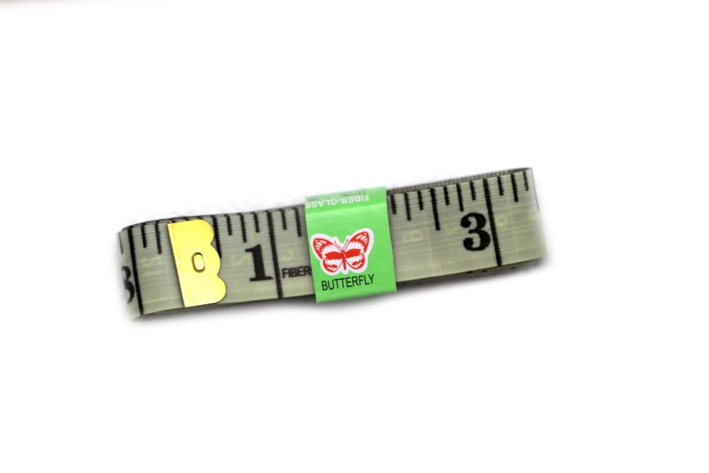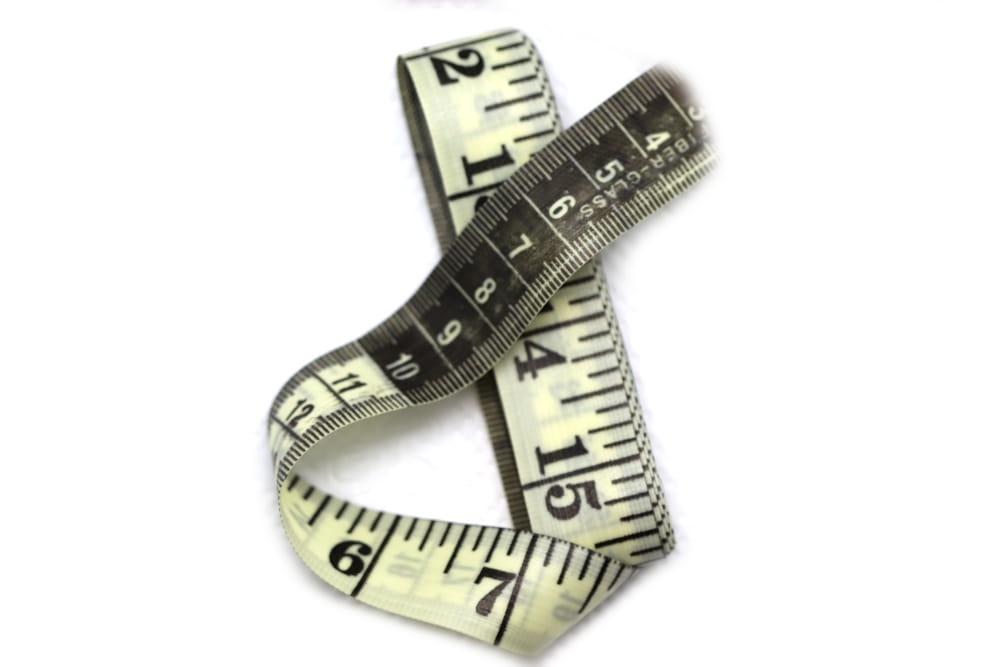 Centymetr krawiecki o metrycznej i calowej podziałce.