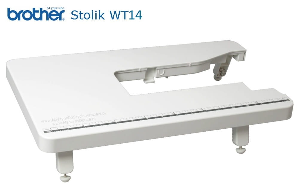 Szeroki blat do domowych maszyn do szycia Brother serii F. Wykonany z wysokiej jakości materiału. Posiada składane automatycznie nóżki, które powodują, że zajmuje mało miejsca oraz jest łatwy do przechowywania. Stolik pozwala uzyskać większą przestrzeń pracy, jest bardzo przydatny podczas szycia materiałów o dużej powierzchni, zapobiega falowaniu się materiałów przed zszyciem.